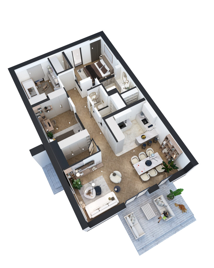 Układ pomieszczeń został zaprojektowany tak, by codzienne życie było proste, wygodne i intuicyjne. Jednym słowem – komfort w praktyce.
