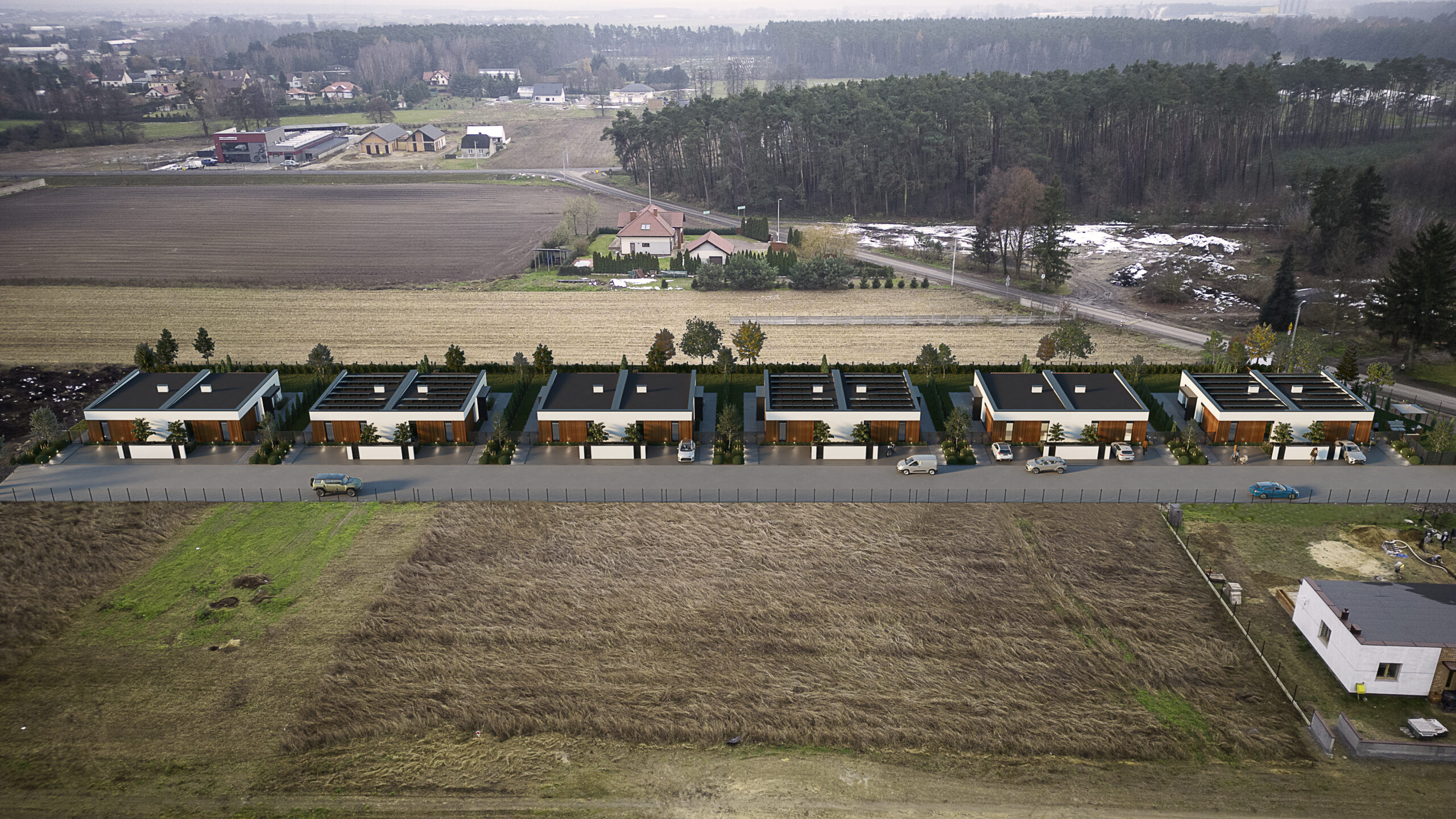 Bliskość lasu sprzyja codziennym spacerom, aktywnościom na świeżym powietrzu i pozwala cieszyć się ciszą oraz pięknem natury bez rezygnacji z wygody – w niedalekim sąsiedztwie znajdują się sklepy, szkoły i infrastruktura usługowa.